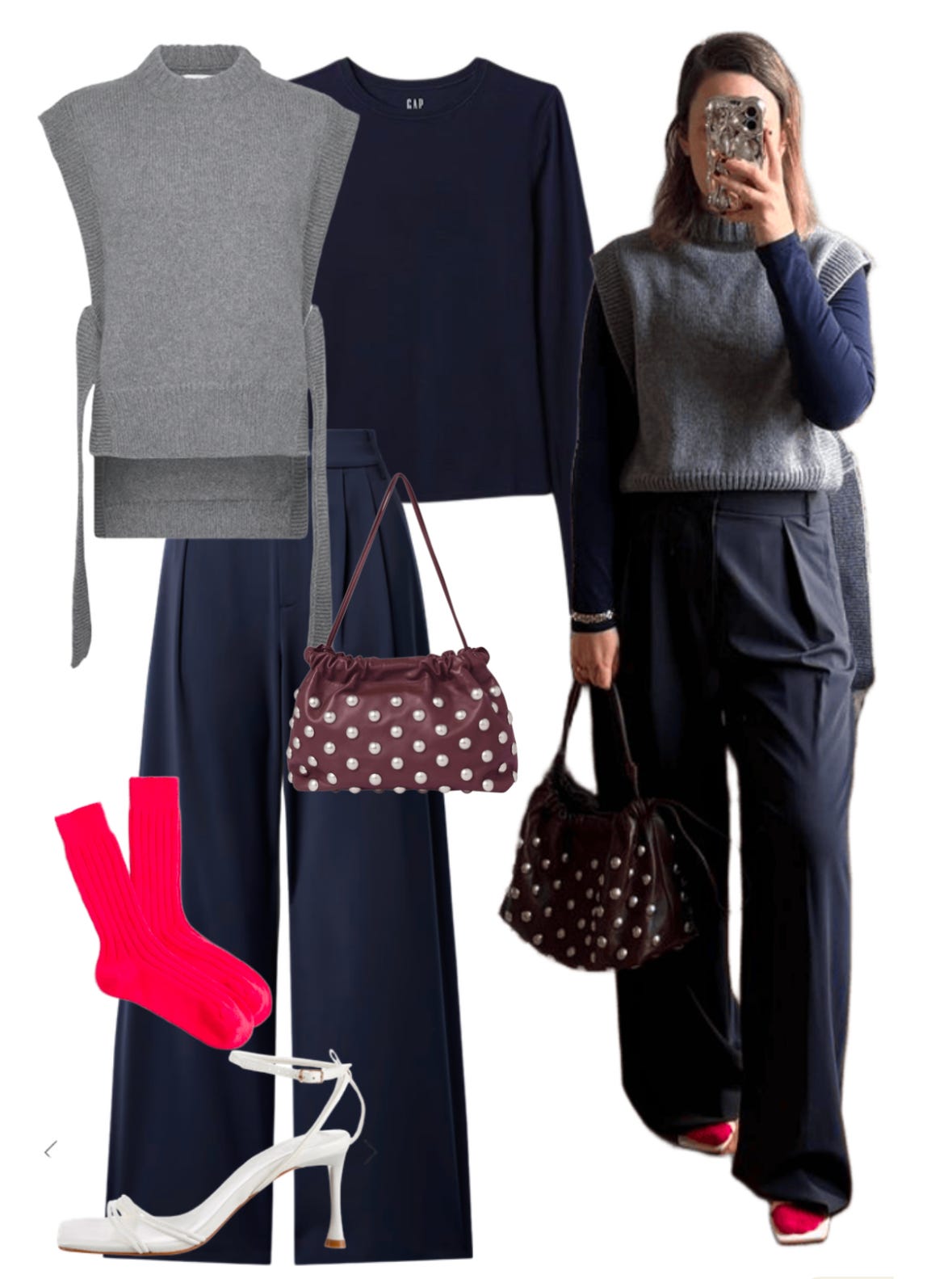Despite knowing all this, I am still undervaluing accessories. I know this from the way I LIT UP in this recent outfit with the little pink sock.