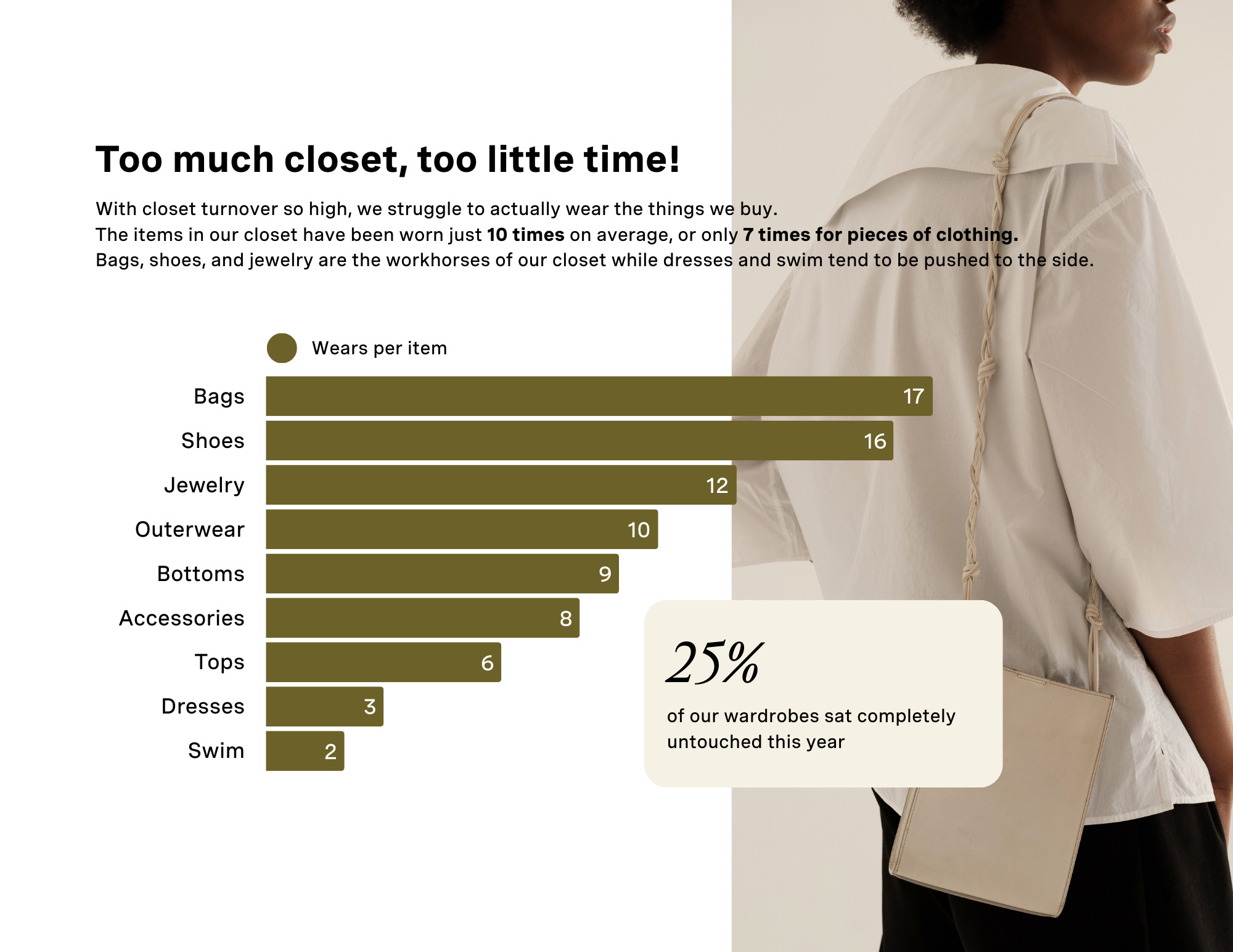 But…have you heard about the Indyx State of Our Wardrobes report!? The data shows that dresses don’t get worn (just 3 times on average! versus a paltry 7 for all clothing items). I find this to be true in my own closet, too.